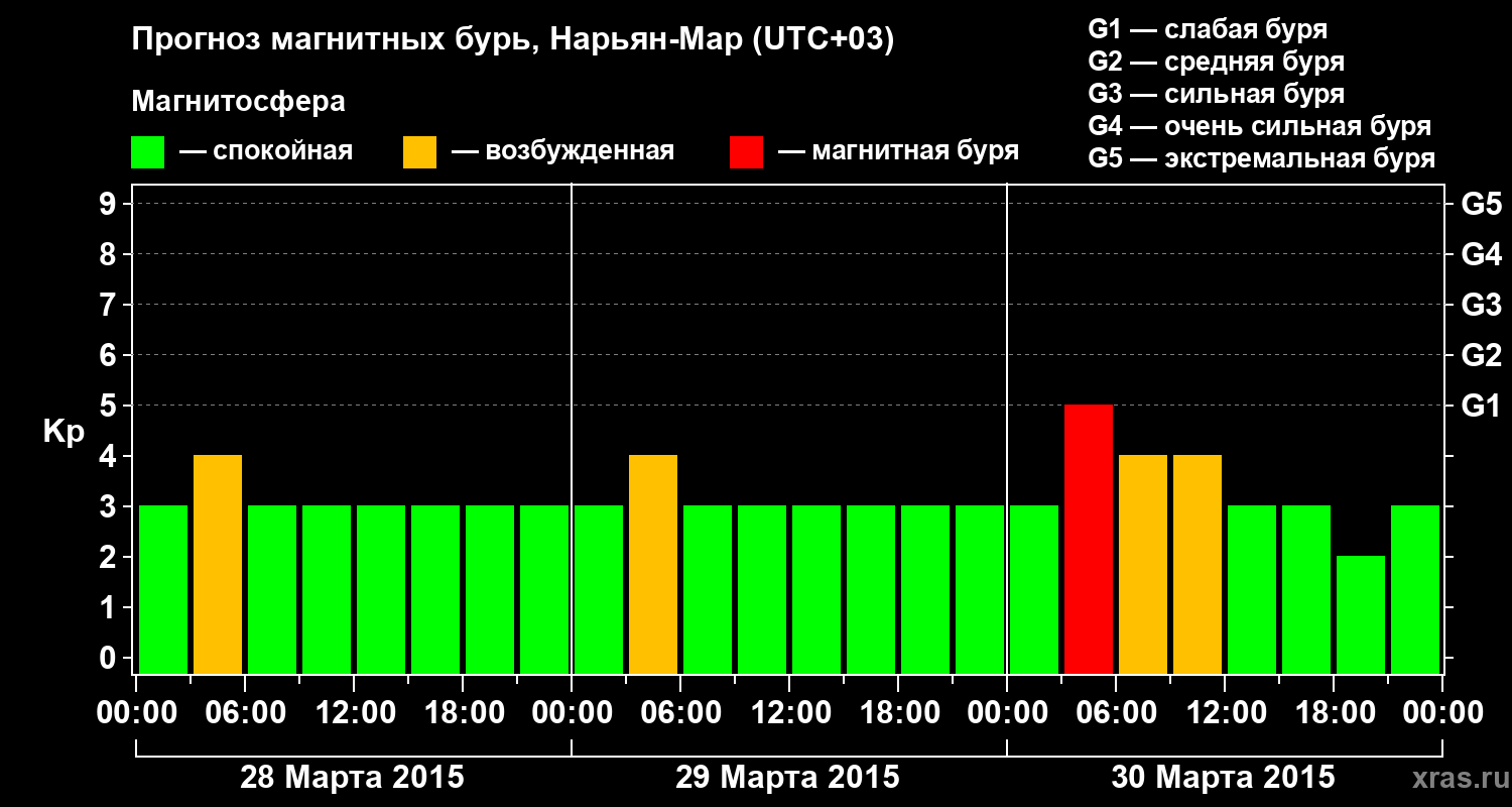 Прогноз магнитных бурь в Нарьян-Маре на 28 марта 2015 года