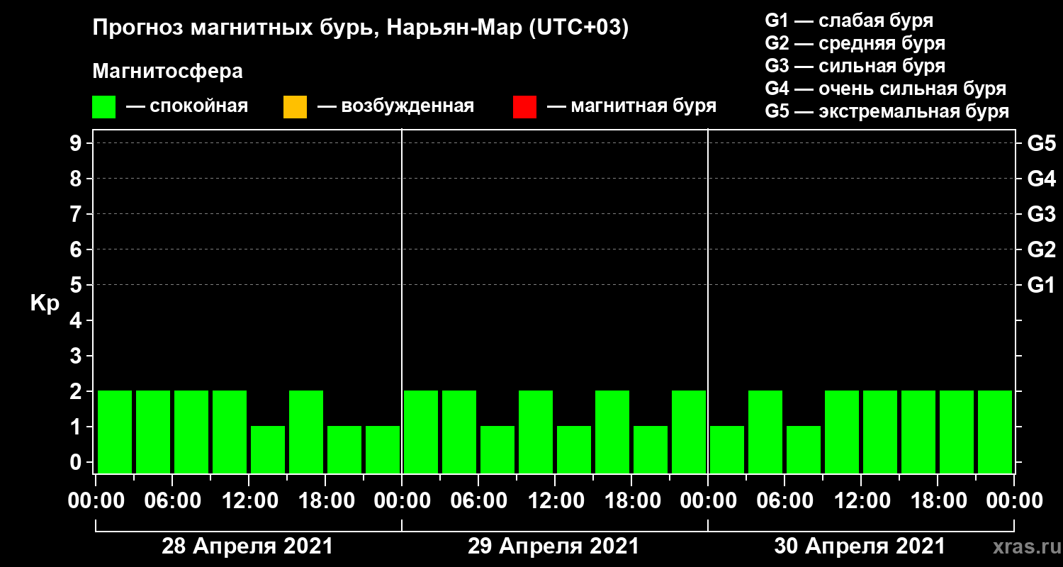 Прогноз магнитных бурь в Нарьян-Маре на 28 апреля 2021 года