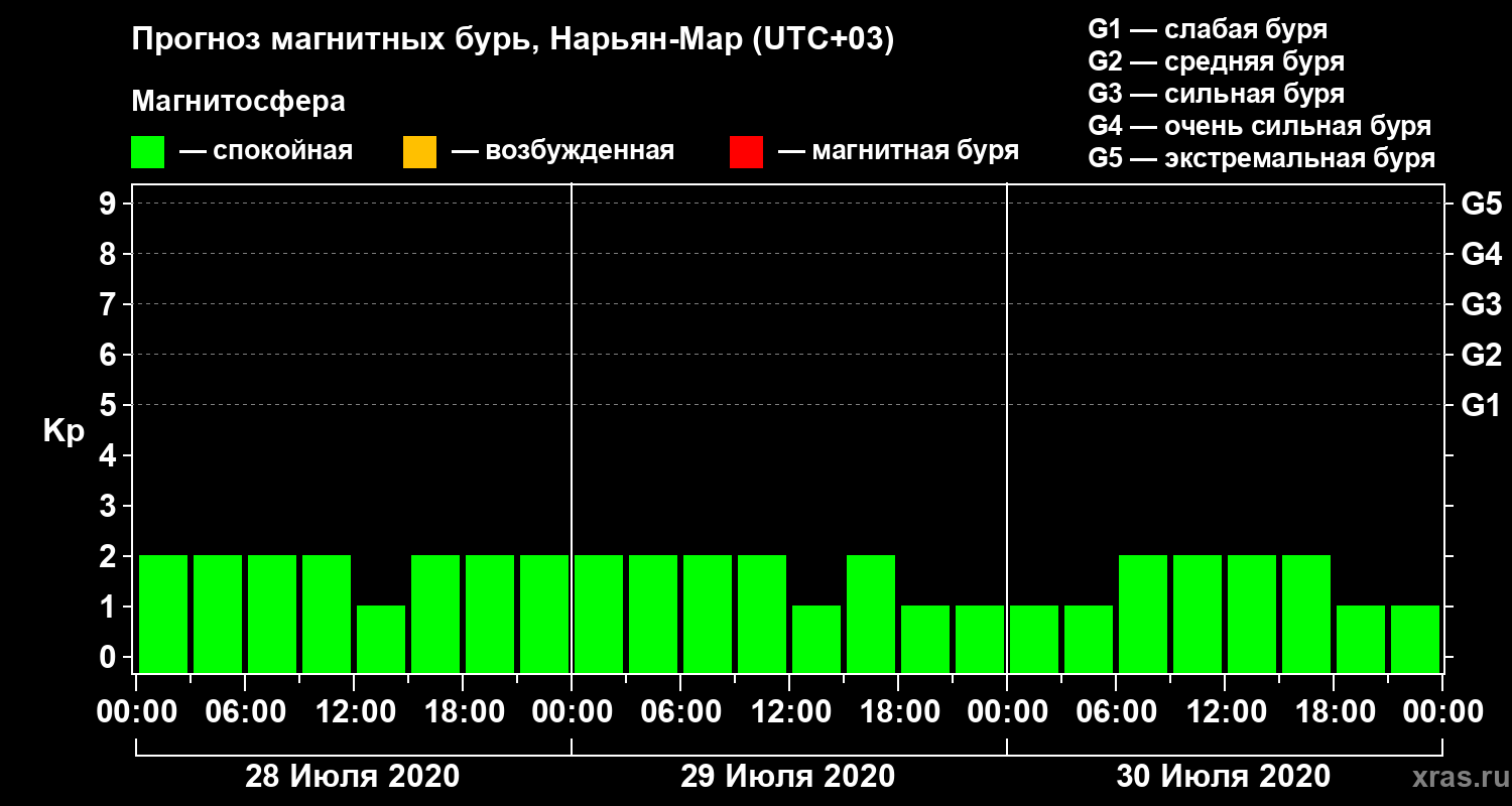 Прогноз магнитных бурь в Нарьян-Маре на 28 июля 2020 года