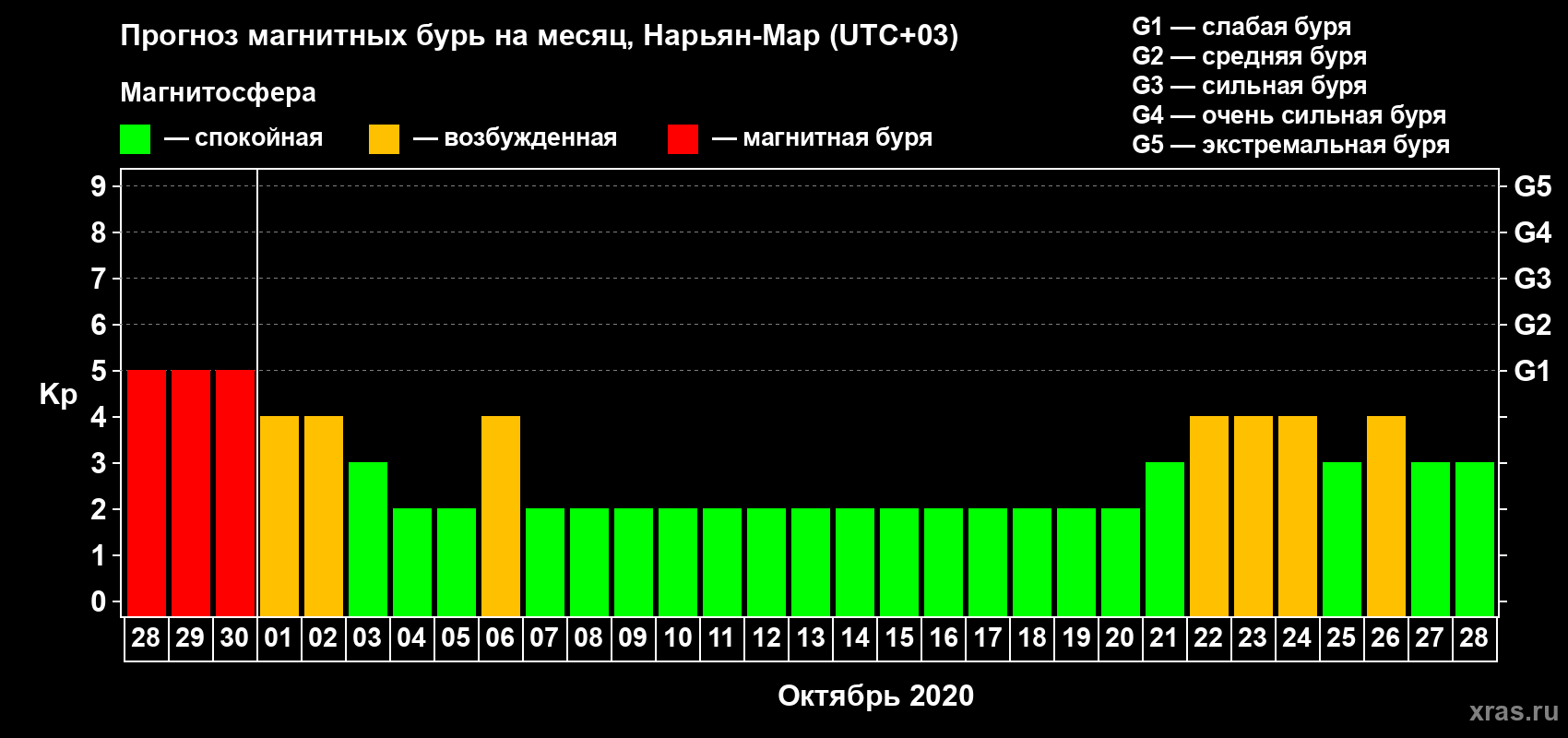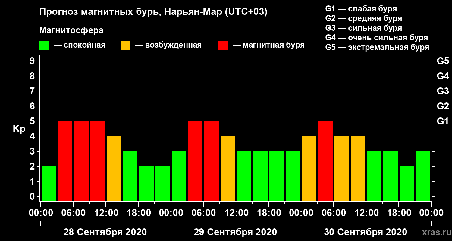 Прогноз магнитных бурь в Нарьян-Маре на 28 сентября 2020 года