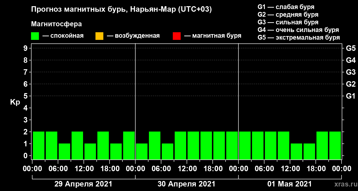 Прогноз магнитных бурь в Нарьян-Маре на 29 апреля 2021 года