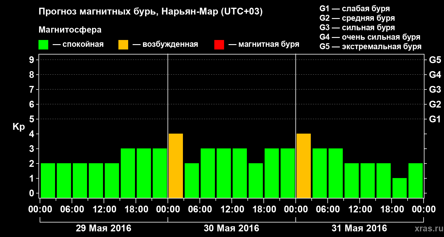 Прогноз магнитных бурь в Нарьян-Маре на 29 мая 2016 года