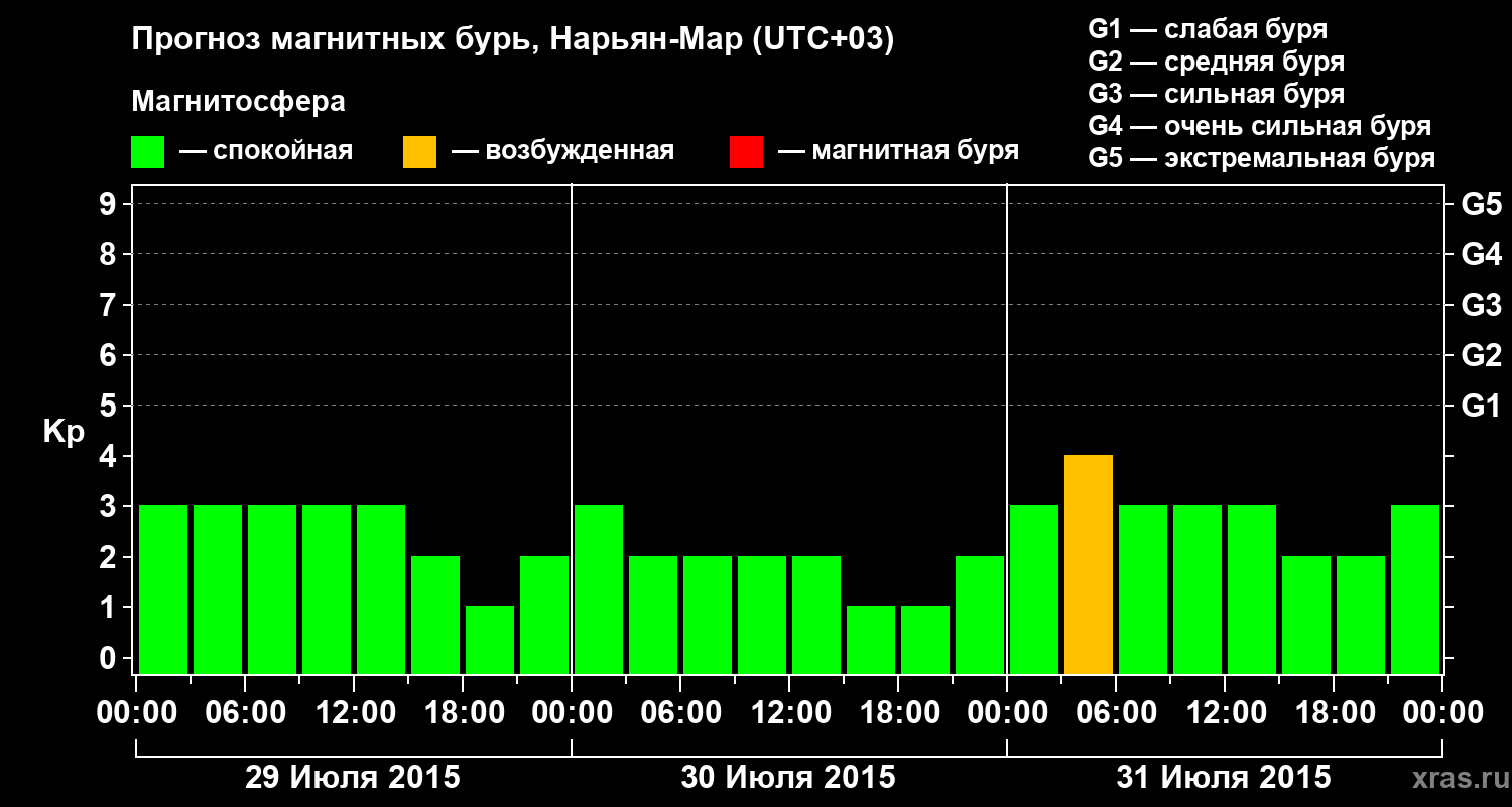Прогноз магнитных бурь в Нарьян-Маре на 29 июля 2015 года