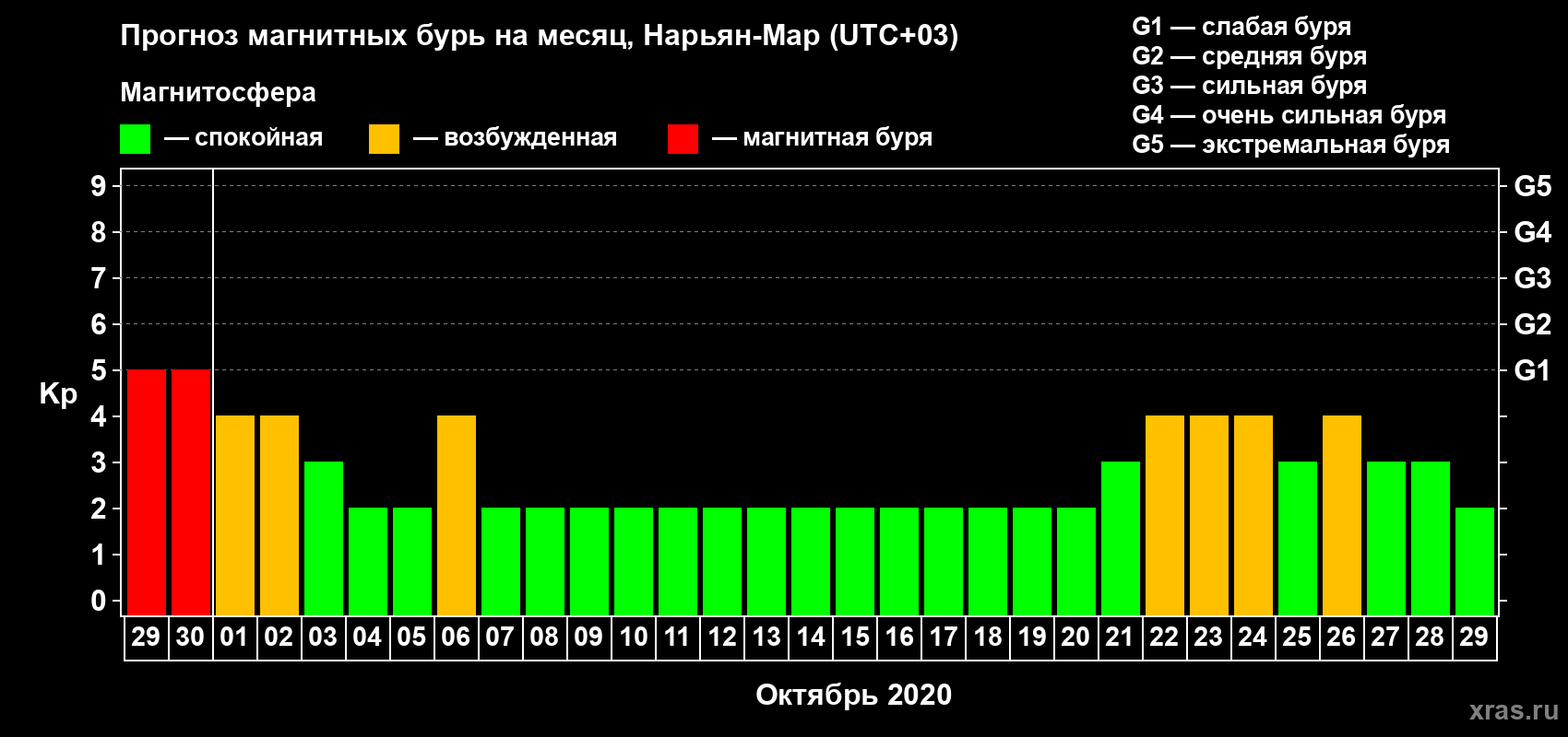Прогноз магнитных бурь в Нарьян-Маре на 29 сентября 2020 года