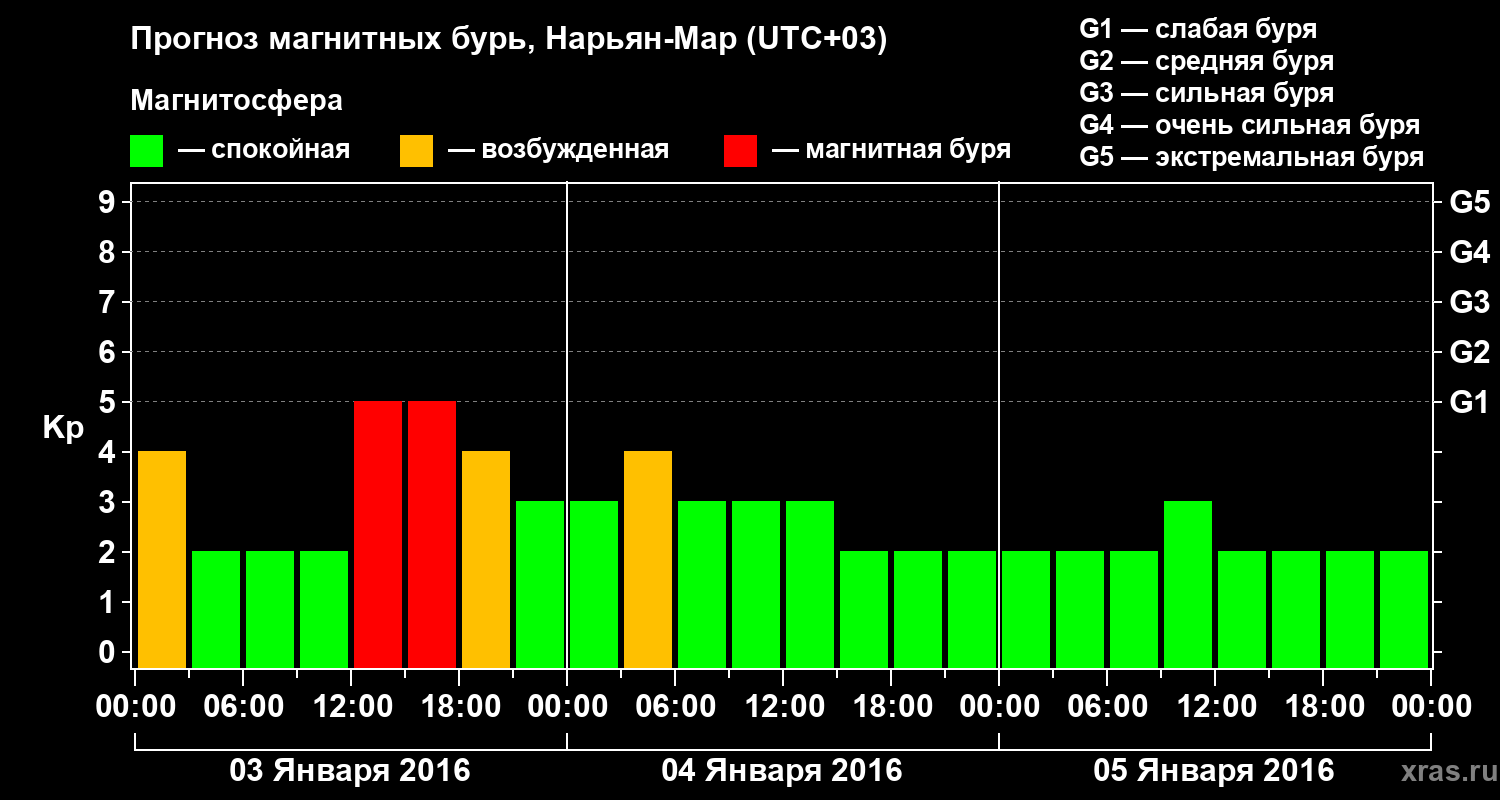Прогноз магнитных бурь в Нарьян-Маре на 3 января 2016 года