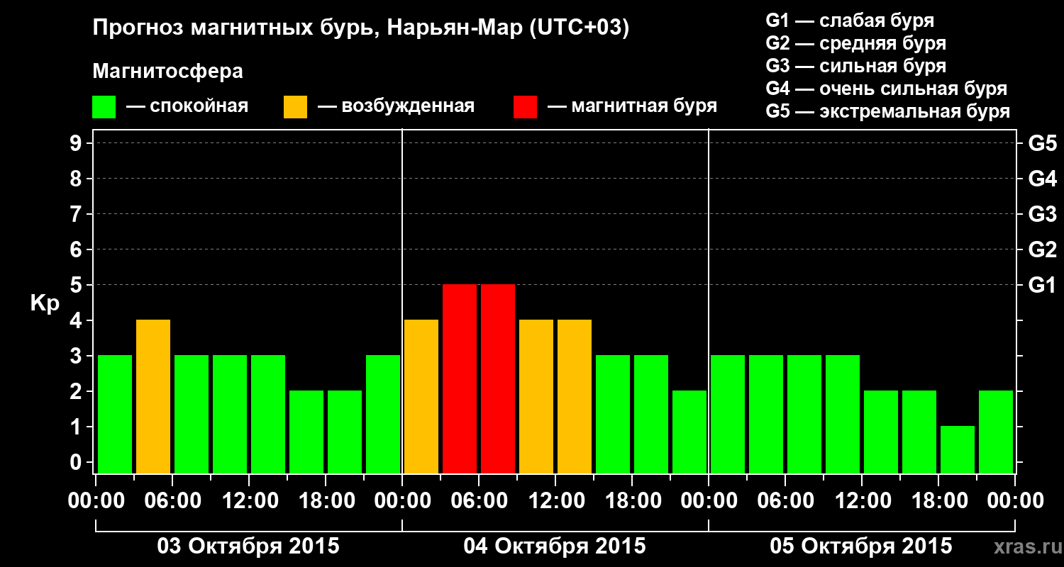 Прогноз магнитных бурь в Нарьян-Маре на 3 октября 2015 года