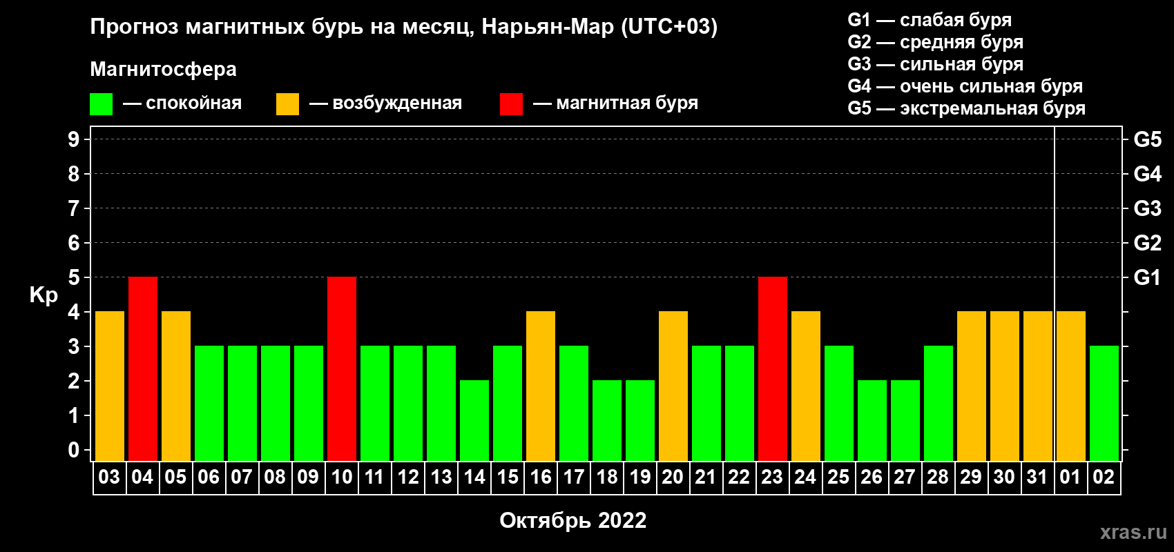 Прогноз магнитных бурь в Нарьян-Маре на 3 октября 2022 года