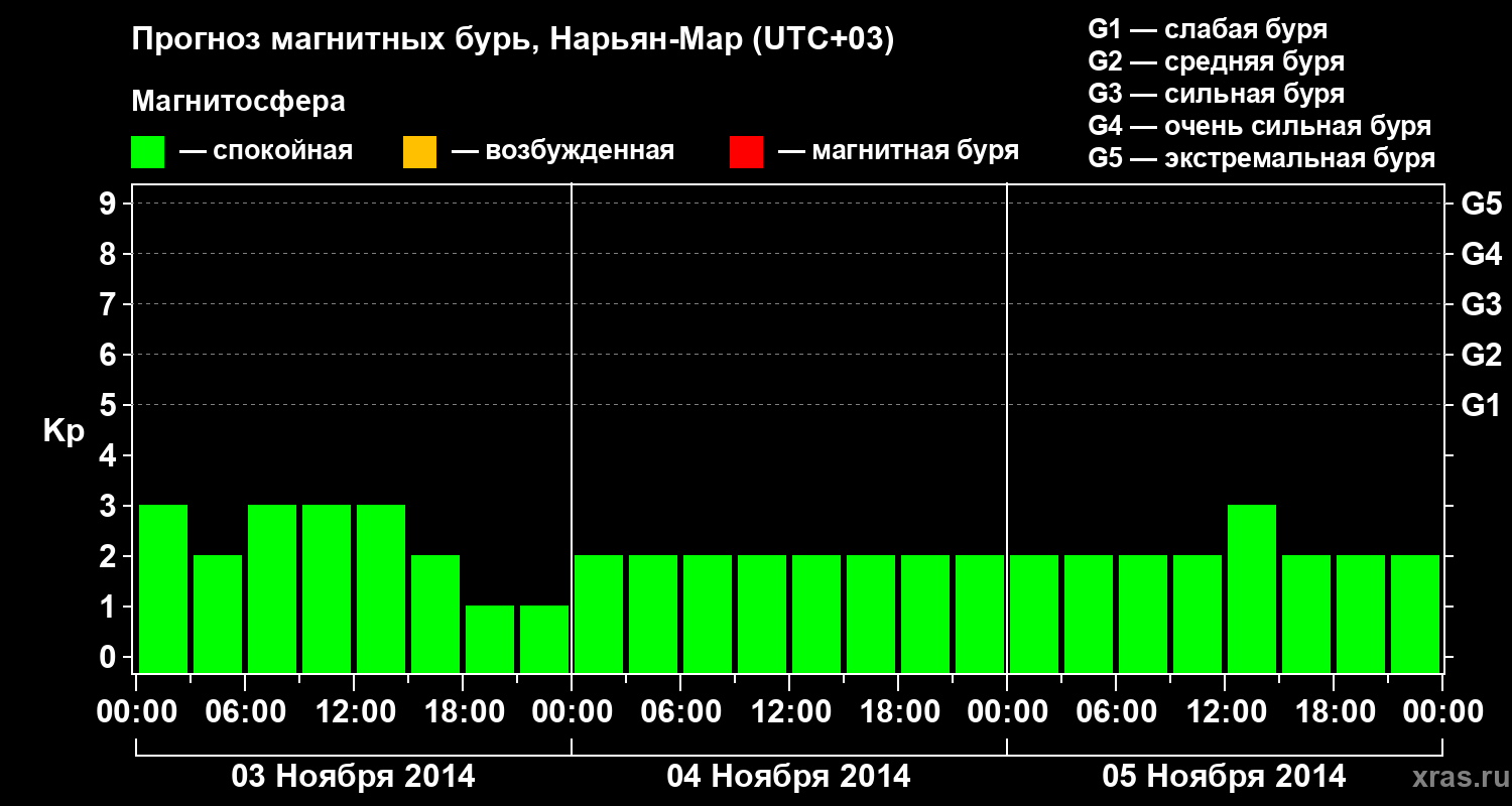 Прогноз магнитных бурь в Нарьян-Маре на 3 ноября 2014 года