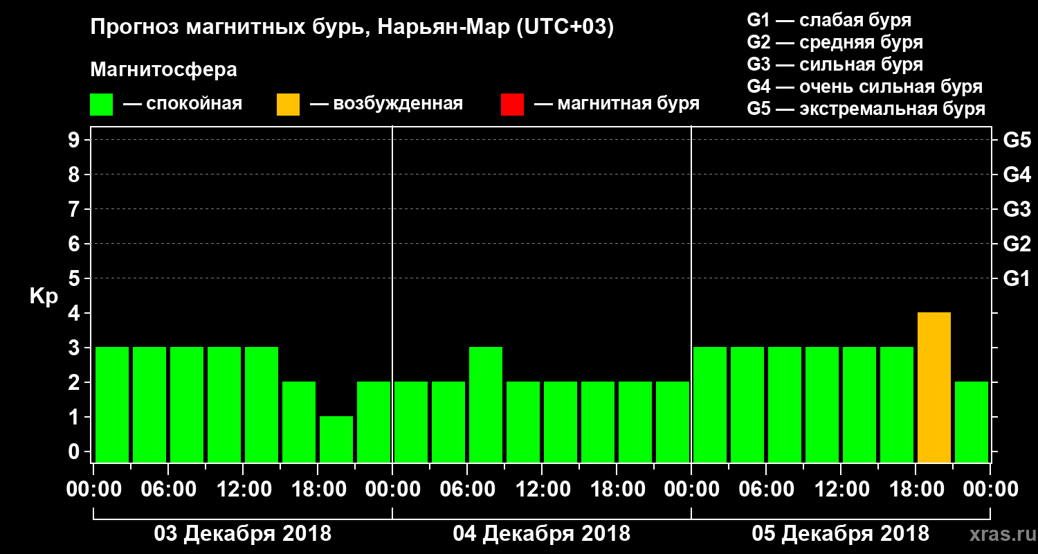 Прогноз магнитных бурь в Нарьян-Маре на 3 декабря 2018 года