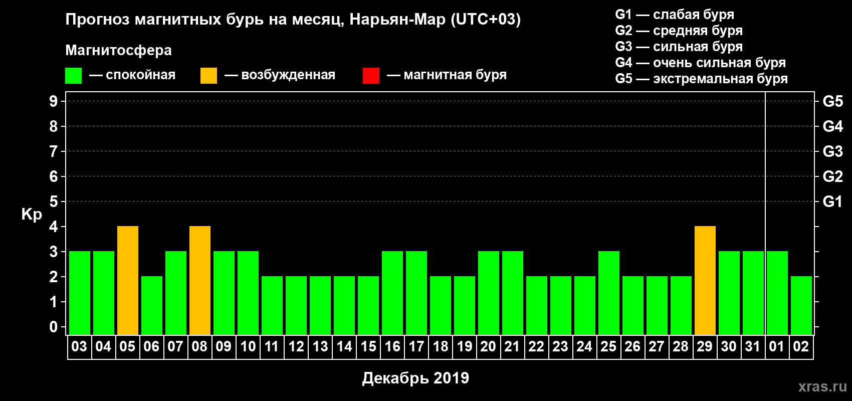 Прогноз магнитных бурь в Нарьян-Маре — 3 декабря 2018 года