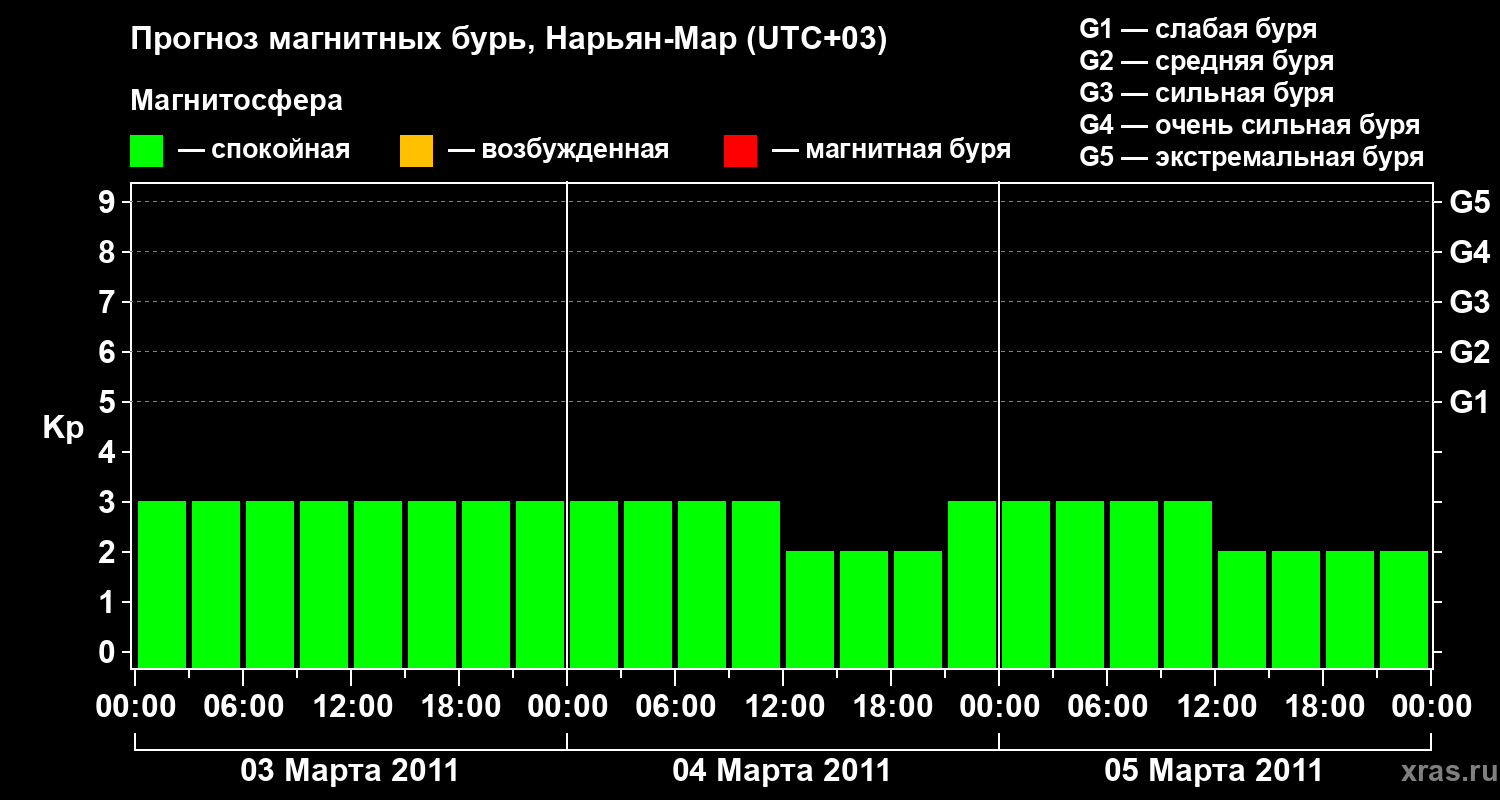 Прогноз магнитных бурь в Нарьян-Маре — 3 марта 2011 года