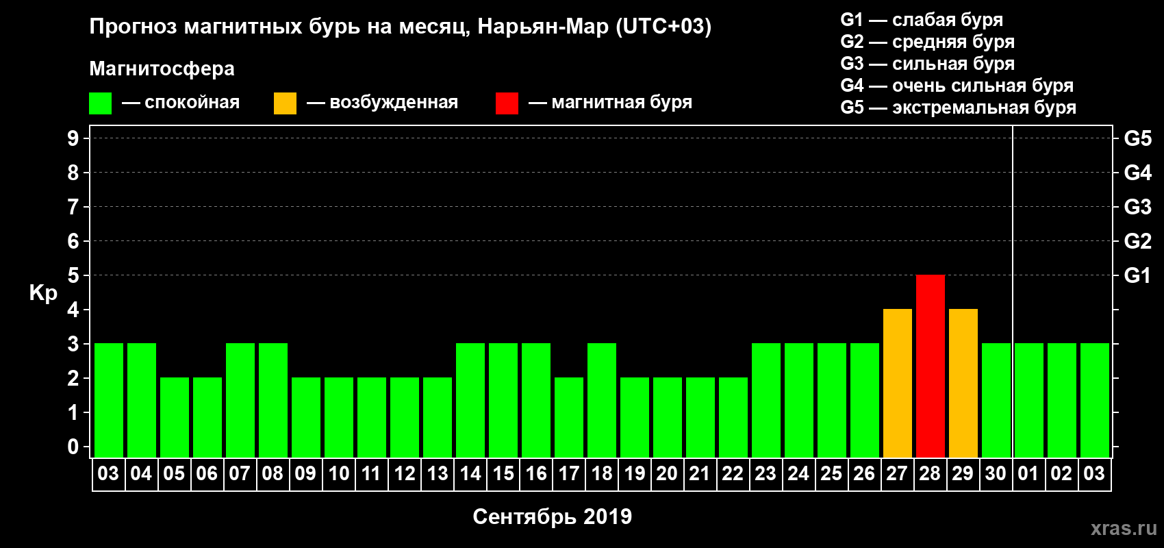 Прогноз магнитных бурь в Нарьян-Маре на 3 сентября 2019 года