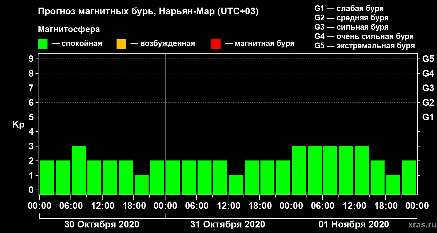 Прогноз магнитных бурь в Нарьян-Маре на 30 октября 2020 года