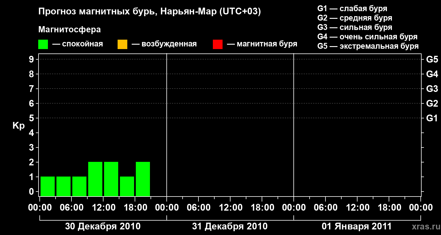 Прогноз магнитных бурь в Нарьян-Маре на 30 декабря 2010 года
