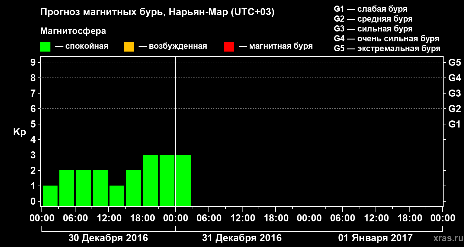 Прогноз магнитных бурь в Нарьян-Маре — 30 декабря 2016 года