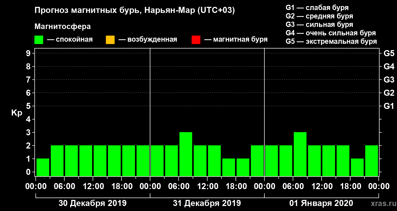 Прогноз магнитных бурь в Нарьян-Маре — 30 декабря 2019 года
