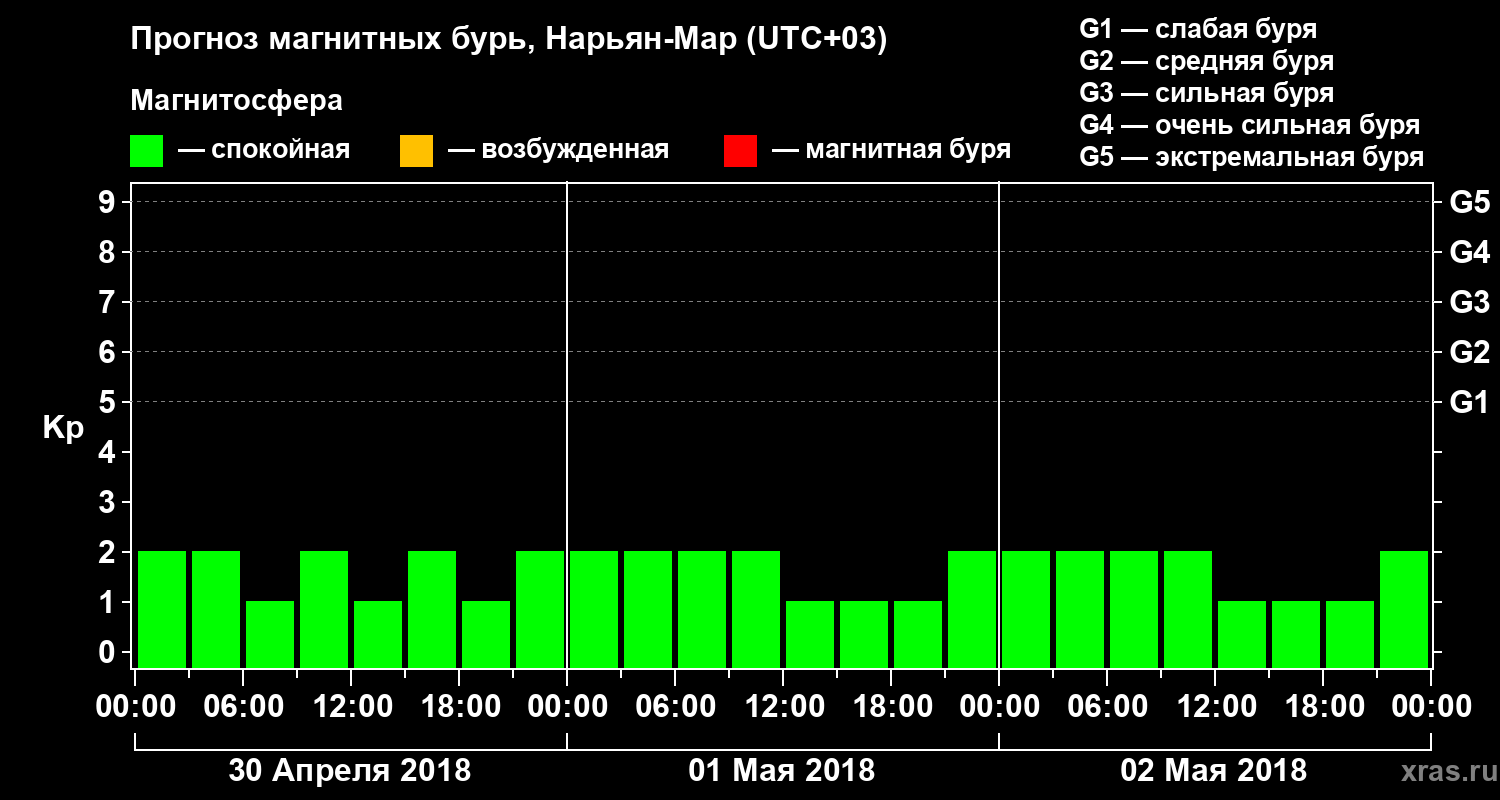 Прогноз магнитных бурь в Нарьян-Маре на 30 апреля 2018 года