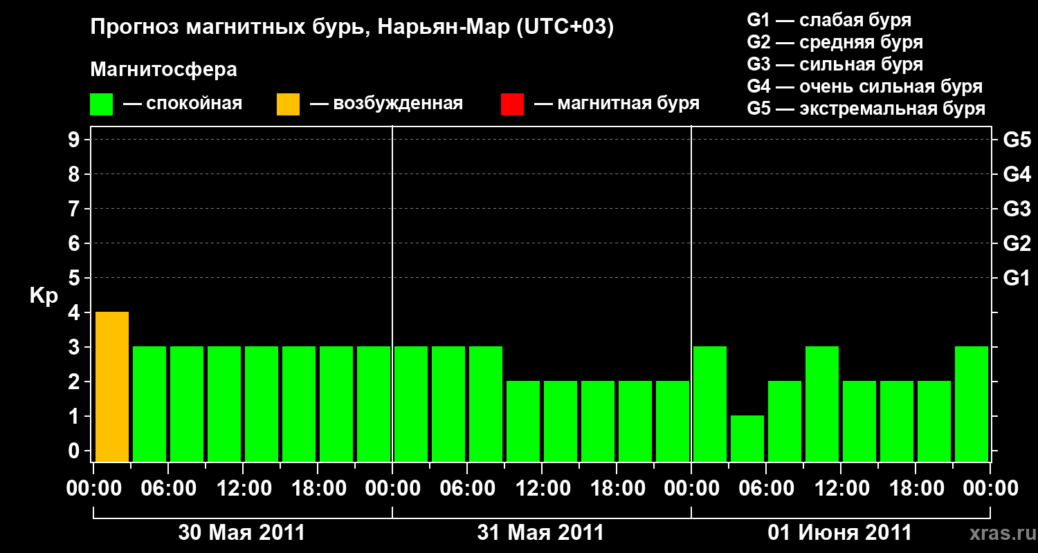 Прогноз магнитных бурь в Нарьян-Маре — 30 мая 2011 года