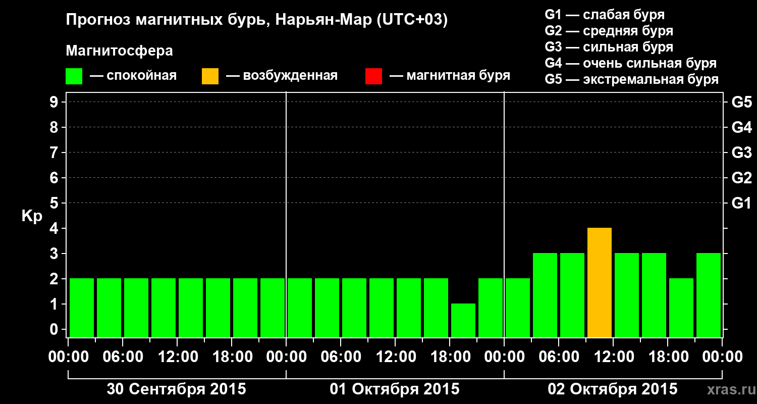 Прогноз магнитных бурь в Нарьян-Маре на 30 сентября 2015 года