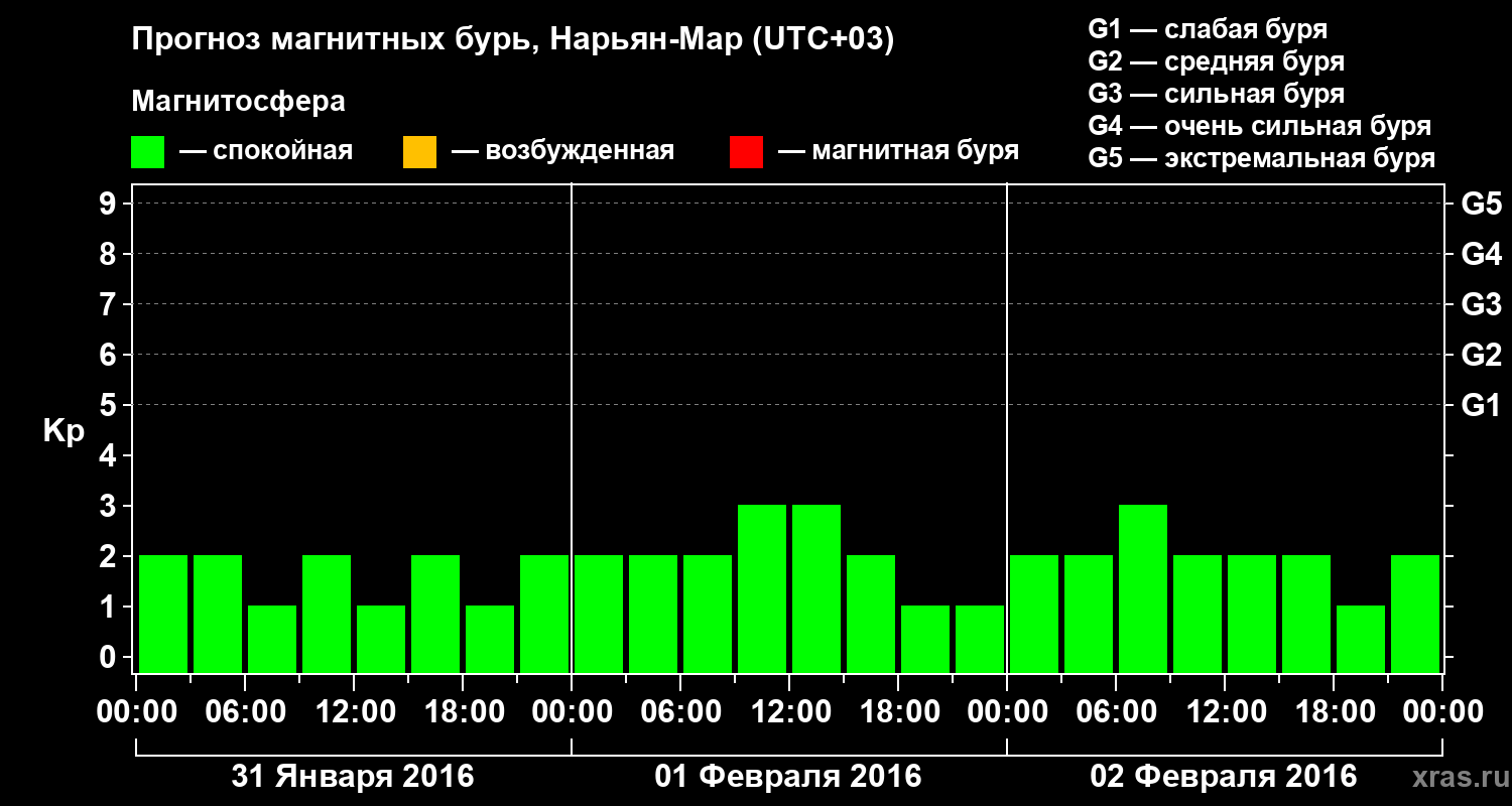 Прогноз магнитных бурь в Нарьян-Маре на 31 января 2016 года