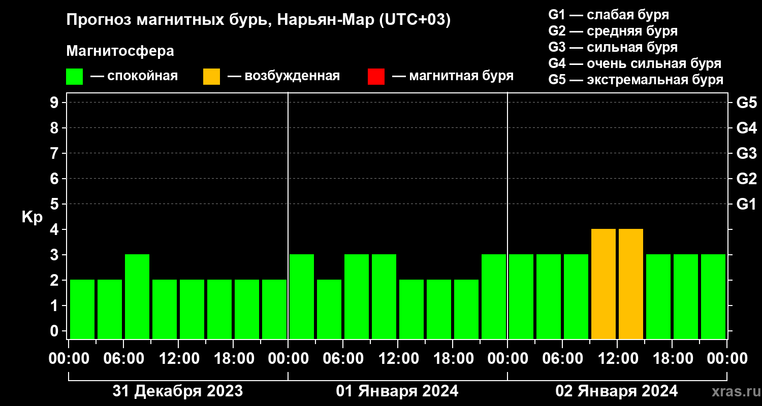 Прогноз магнитных бурь в Нарьян-Маре на 31 декабря 2023 года