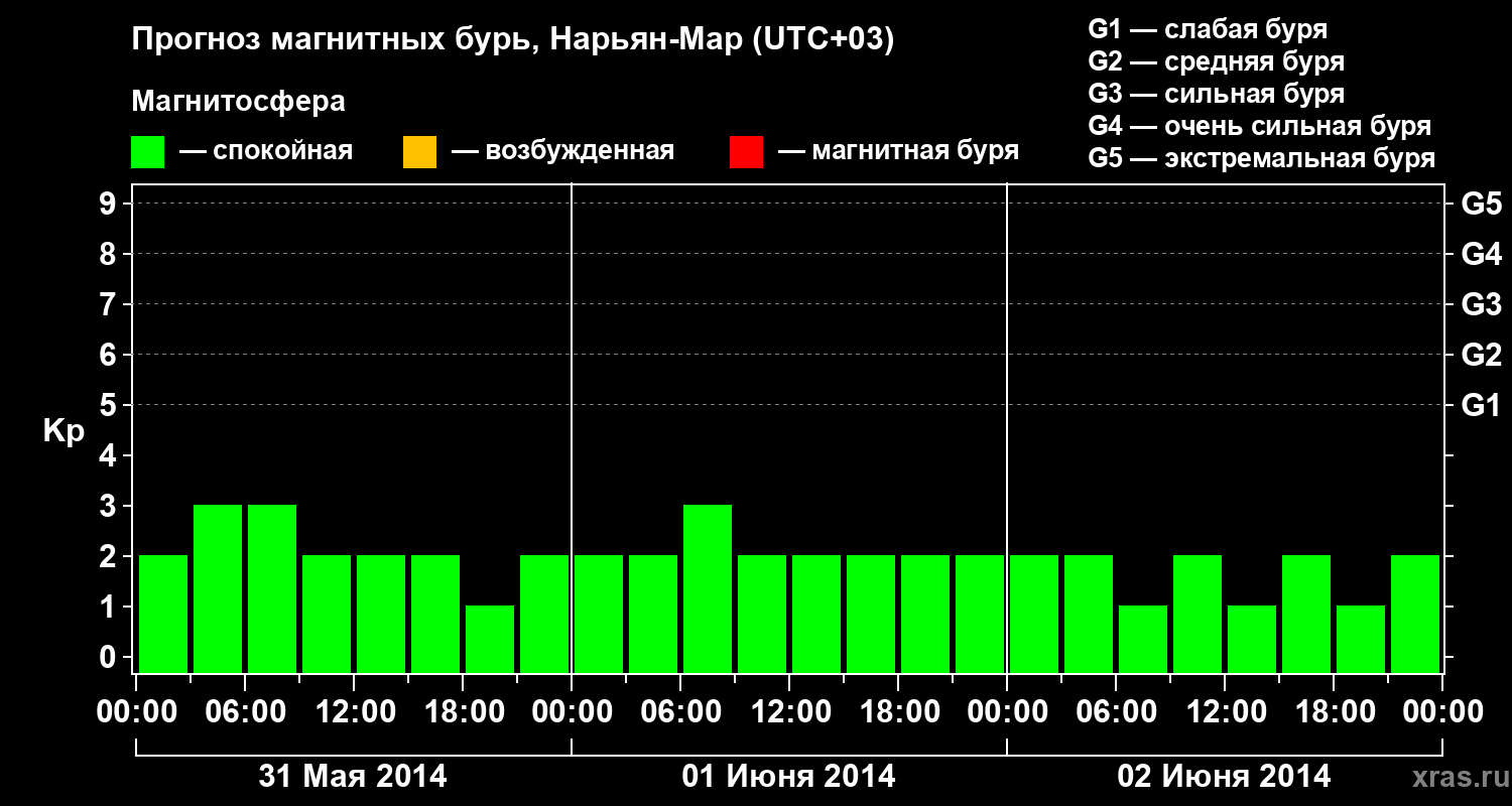 Прогноз магнитных бурь в Нарьян-Маре на 31 мая 2014 года