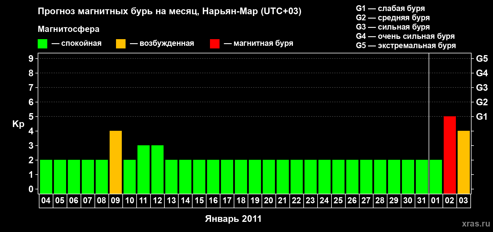 Прогноз магнитных бурь в Нарьян-Маре — 4 января 2011 года