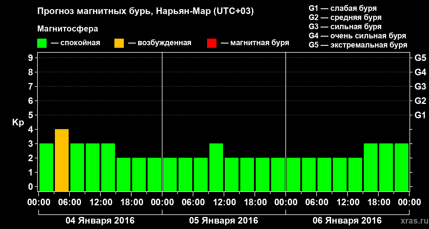 Прогноз магнитных бурь в Нарьян-Маре на 4 января 2016 года