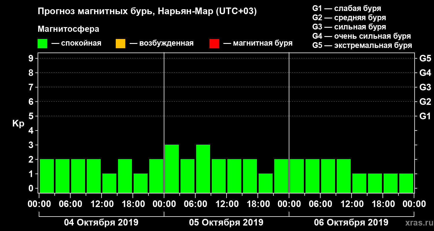 Прогноз магнитных бурь в Нарьян-Маре на 4 октября 2019 года