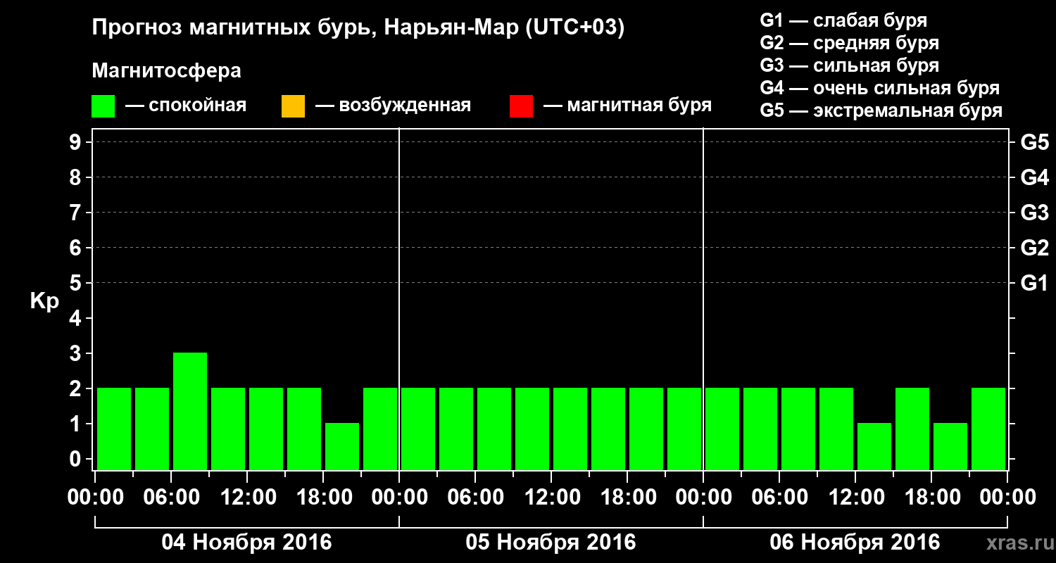 Прогноз магнитных бурь в Нарьян-Маре на 4 ноября 2016 года