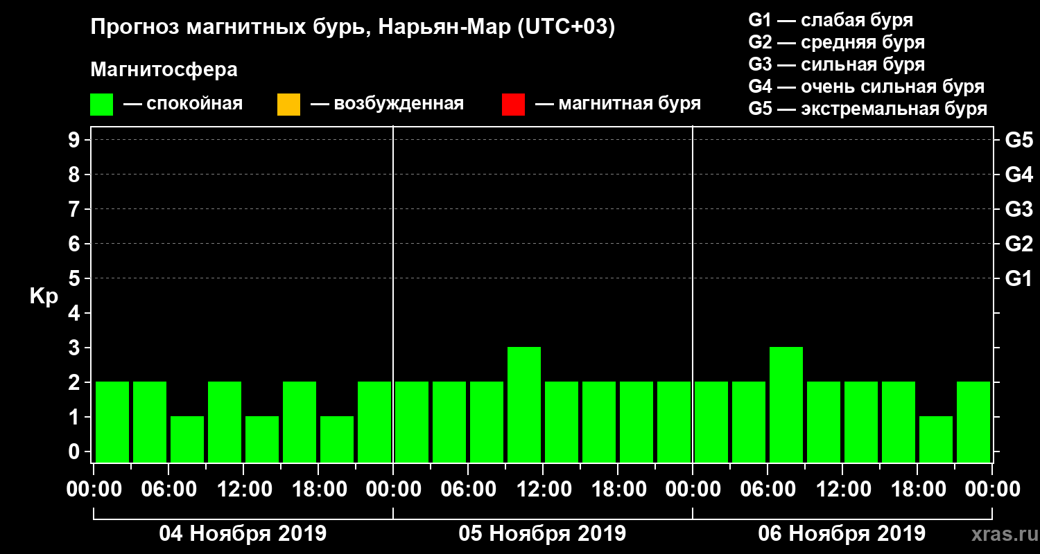 Прогноз магнитных бурь в Нарьян-Маре на 4 ноября 2019 года
