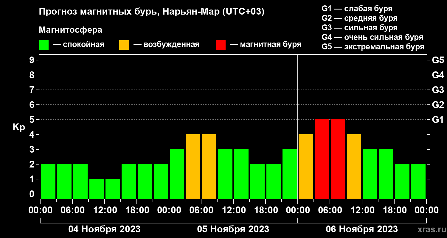 Прогноз магнитных бурь в Нарьян-Маре — 4 ноября 2023 года