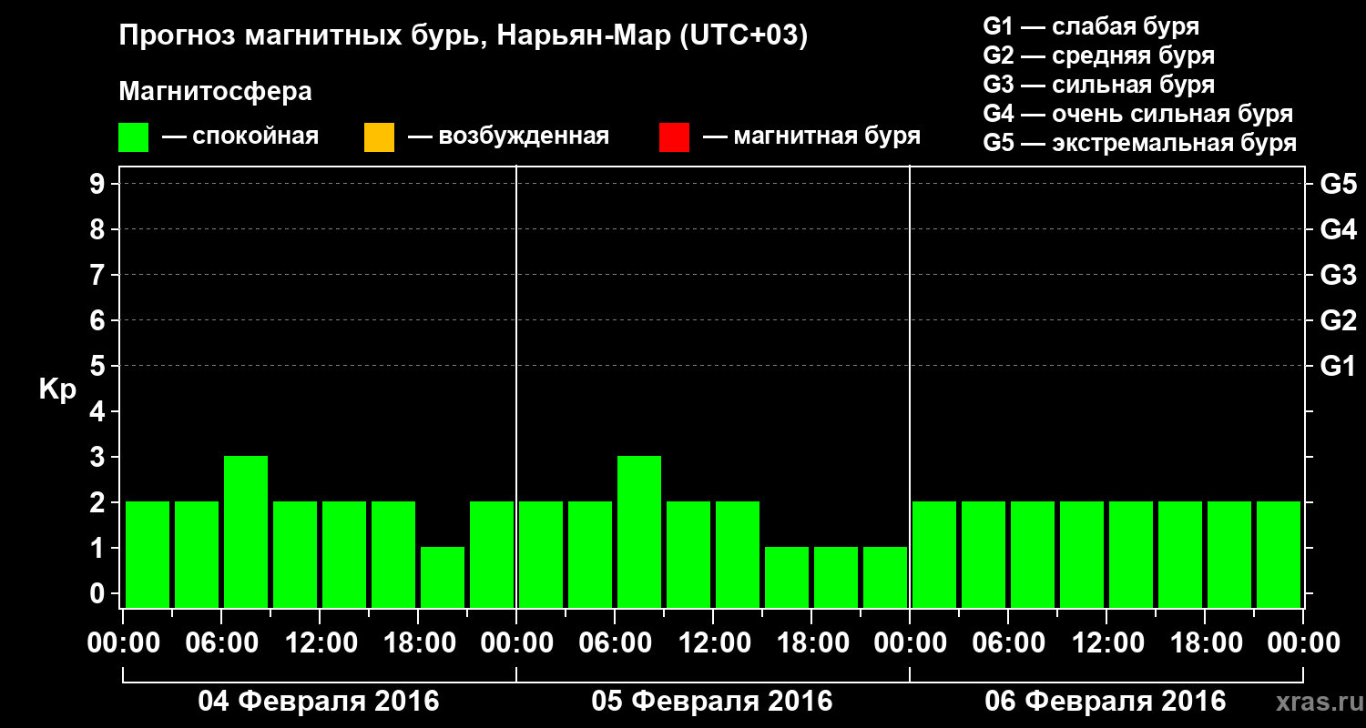 Прогноз магнитных бурь в Нарьян-Маре на 4 февраля 2016 года