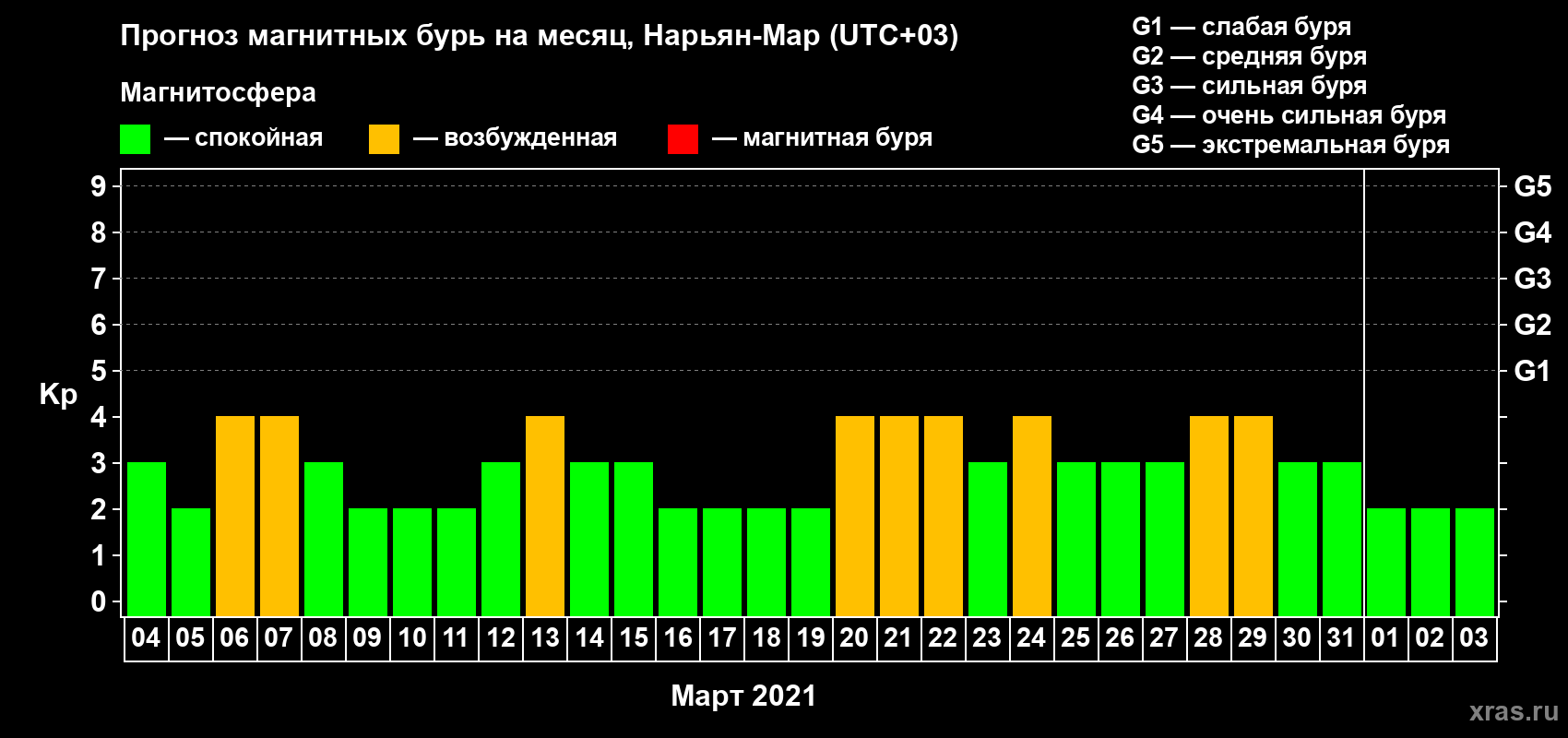 Прогноз магнитных бурь в Нарьян-Маре на 4 марта 2021 года