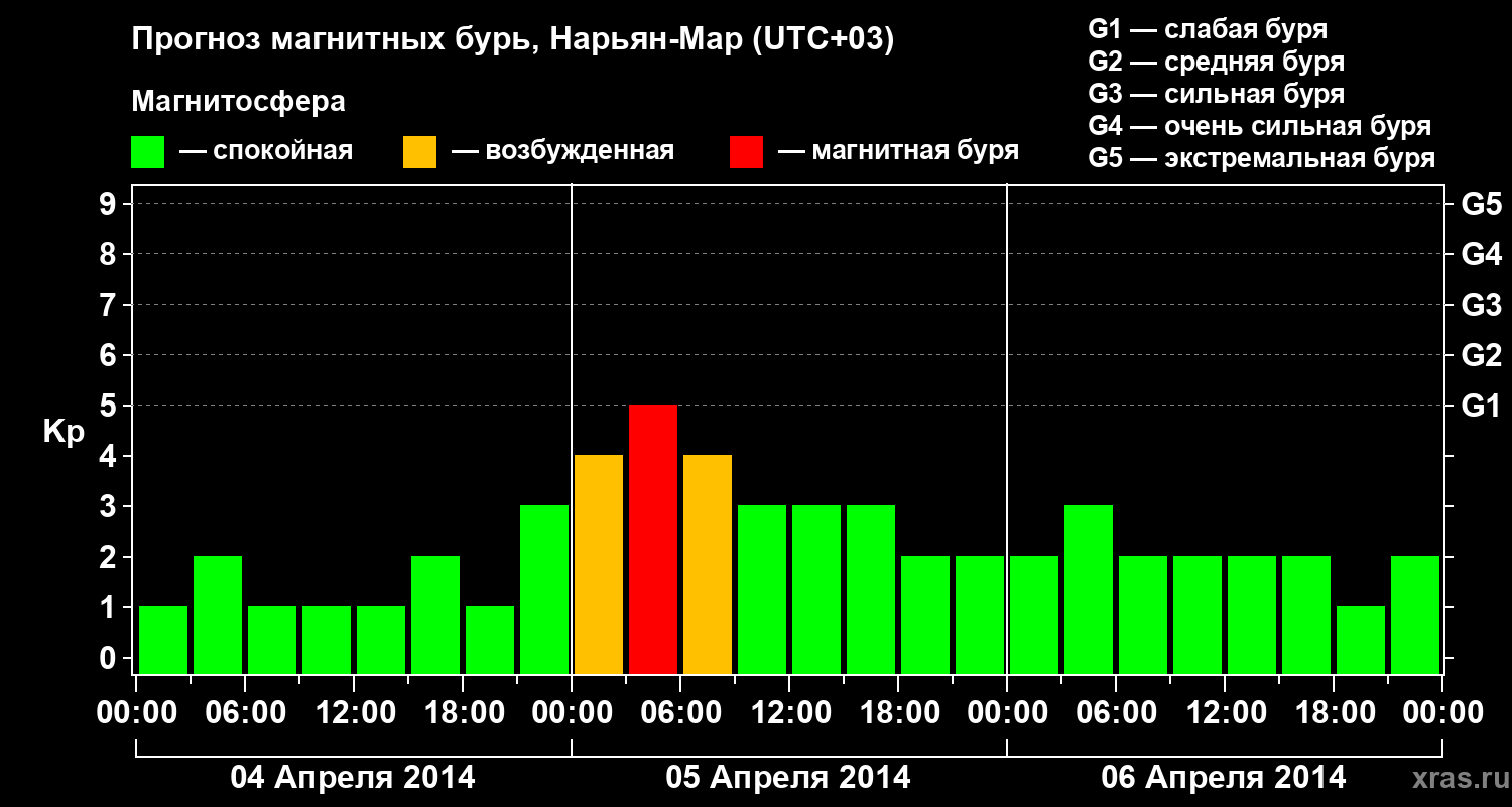 Прогноз магнитных бурь в Нарьян-Маре на 4 апреля 2014 года