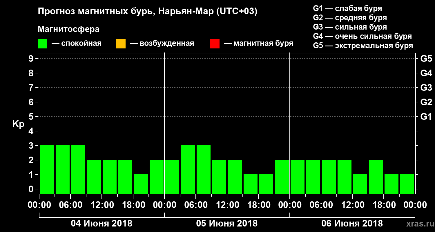 Прогноз магнитных бурь в Нарьян-Маре на 4 июня 2018 года
