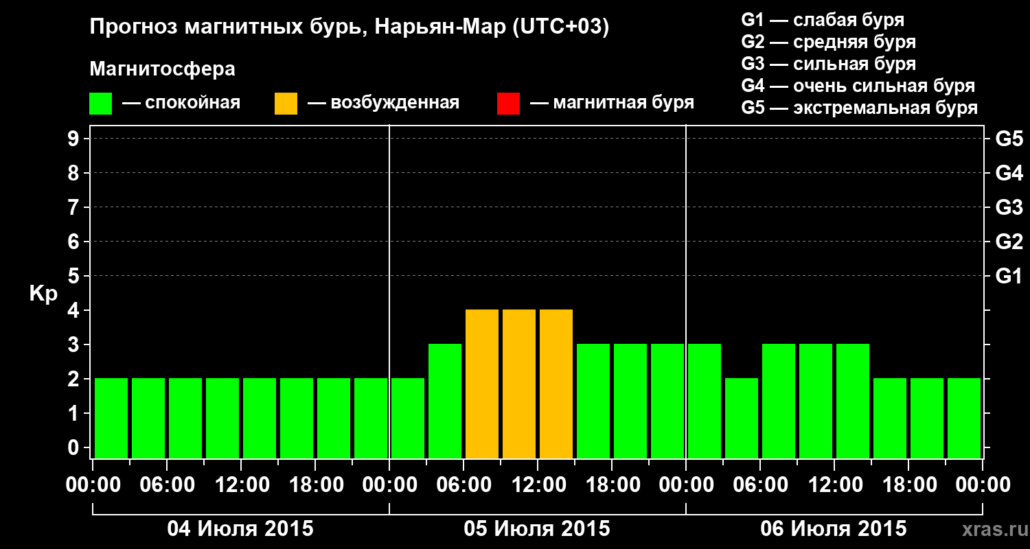 Прогноз магнитных бурь в Нарьян-Маре на 4 июля 2015 года