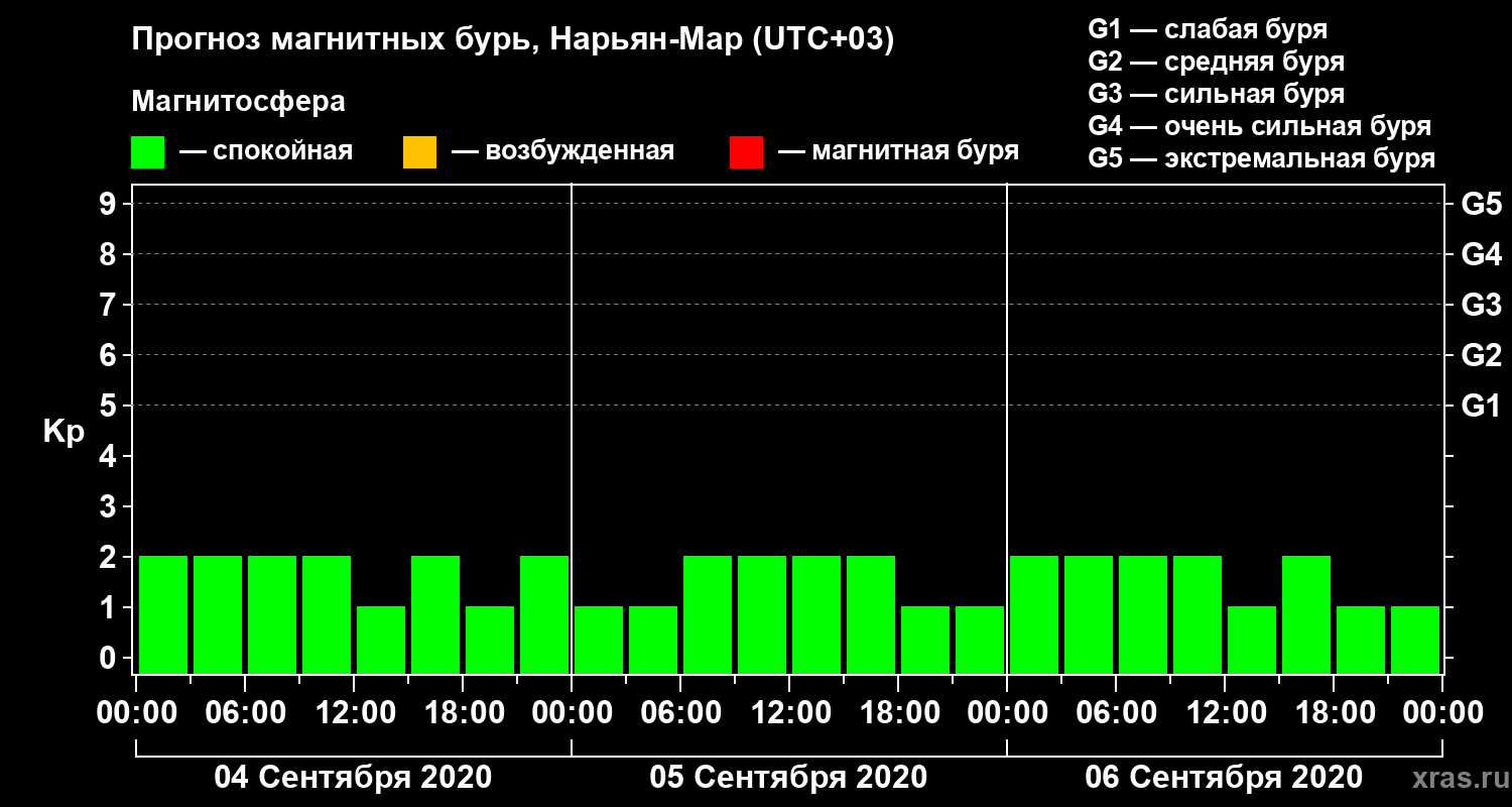 Прогноз магнитных бурь в Нарьян-Маре на 4 сентября 2020 года