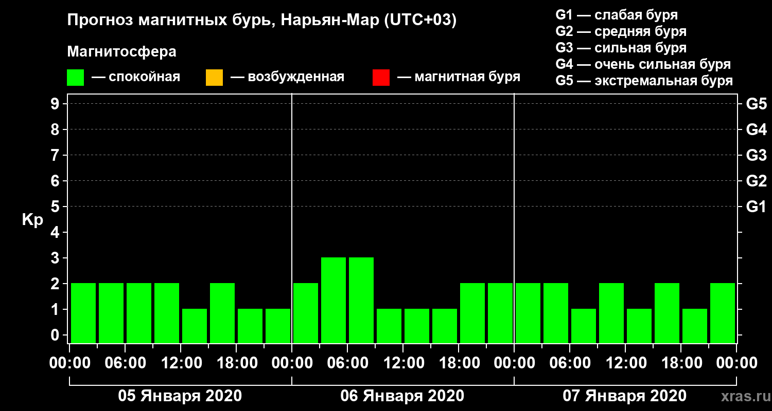 Прогноз магнитных бурь в Нарьян-Маре на 5 января 2020 года