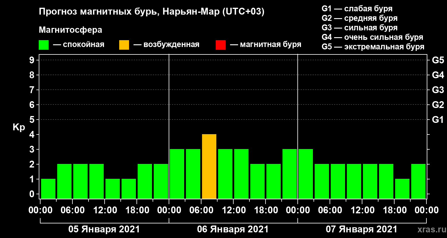 Прогноз магнитных бурь в Нарьян-Маре на 5 января 2021 года