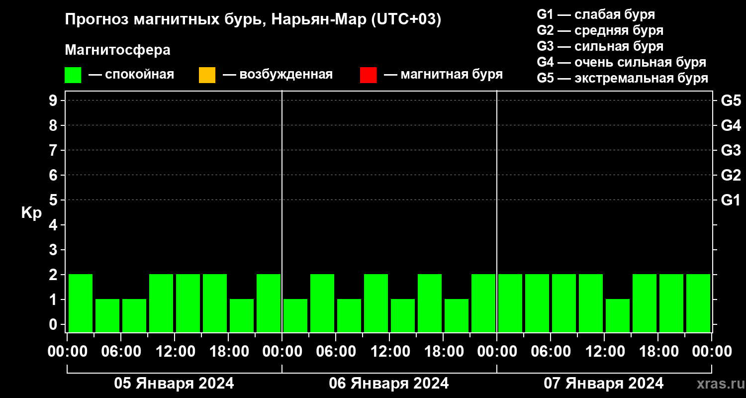 Прогноз магнитных бурь в Нарьян-Маре на 5 января 2024 года