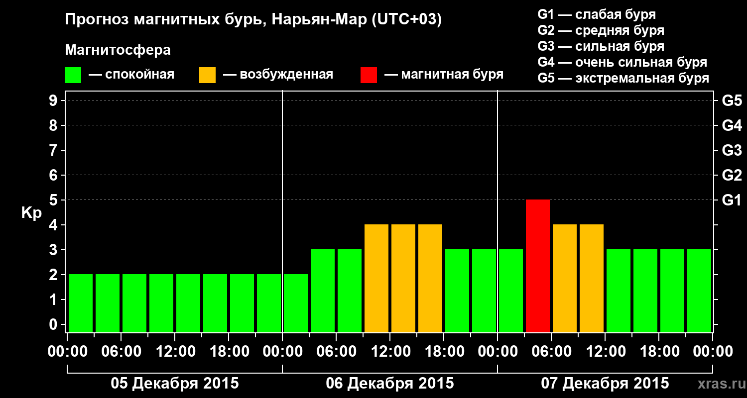 Прогноз магнитных бурь в Нарьян-Маре на 5 декабря 2015 года