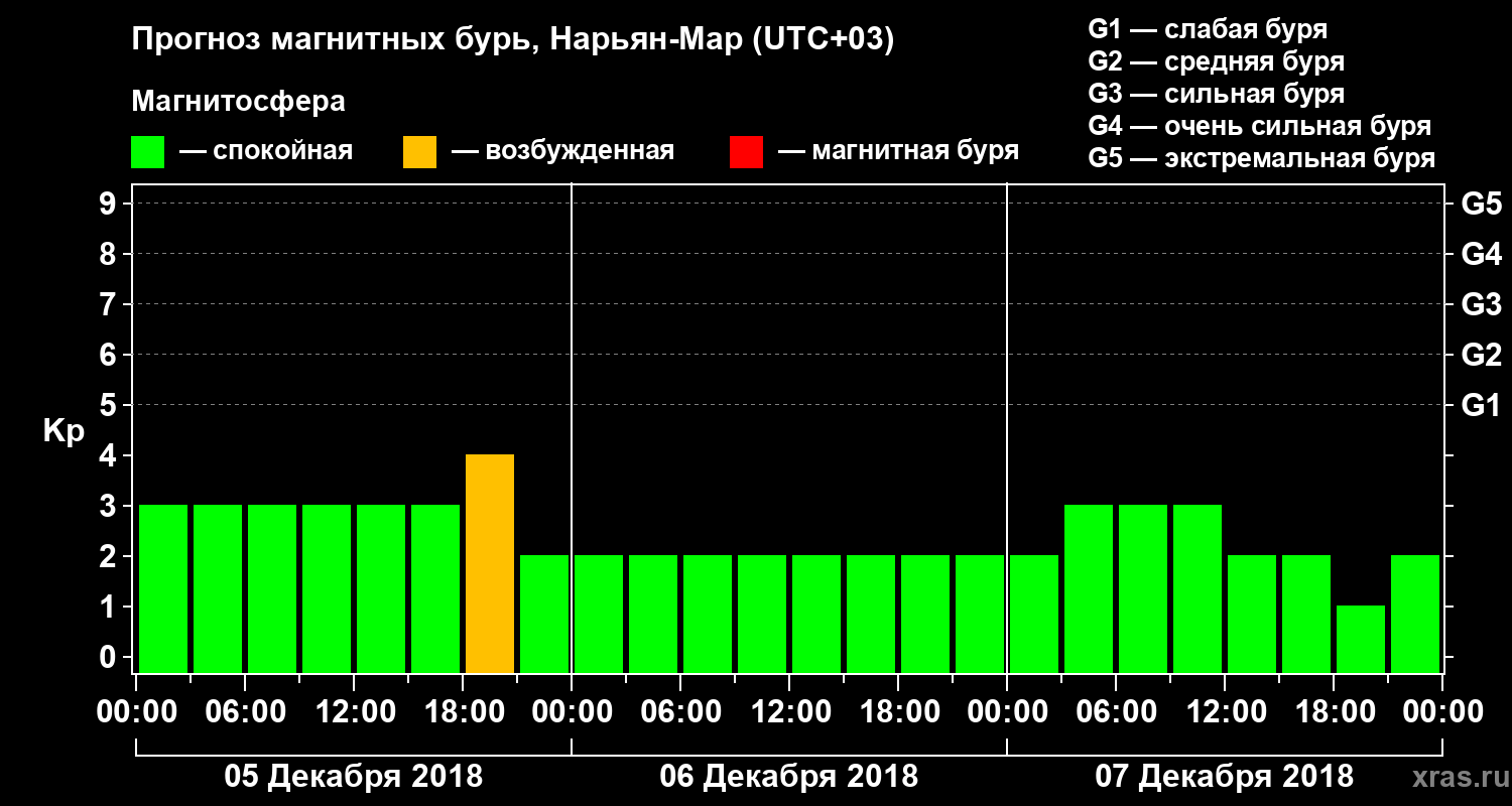 Прогноз магнитных бурь в Нарьян-Маре на 5 декабря 2018 года