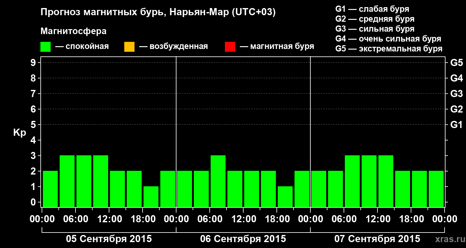 Прогноз магнитных бурь в Нарьян-Маре на 5 сентября 2015 года