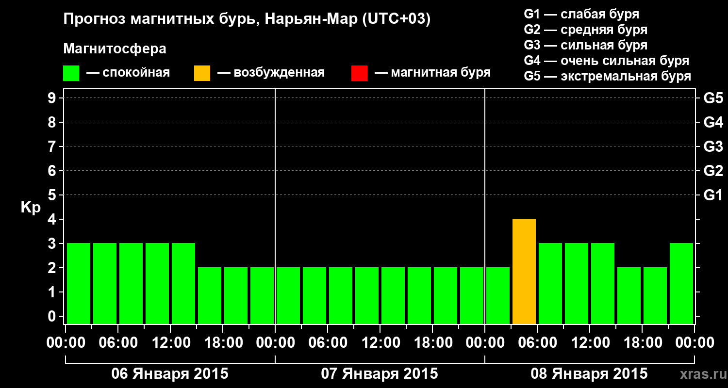 Прогноз магнитных бурь в Нарьян-Маре — 6 января 2015 года