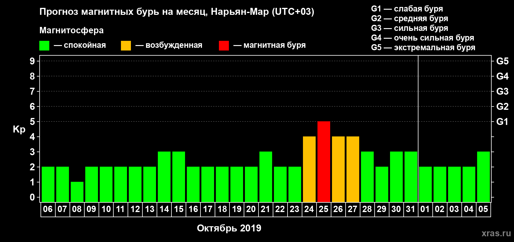 Прогноз магнитных бурь в Нарьян-Маре — 6 октября 2019 года