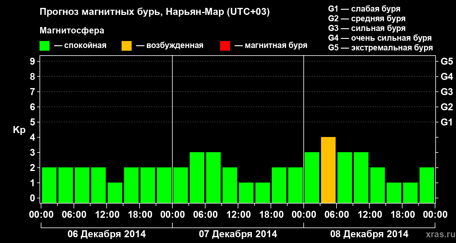 Прогноз магнитных бурь в Нарьян-Маре на 6 декабря 2014 года