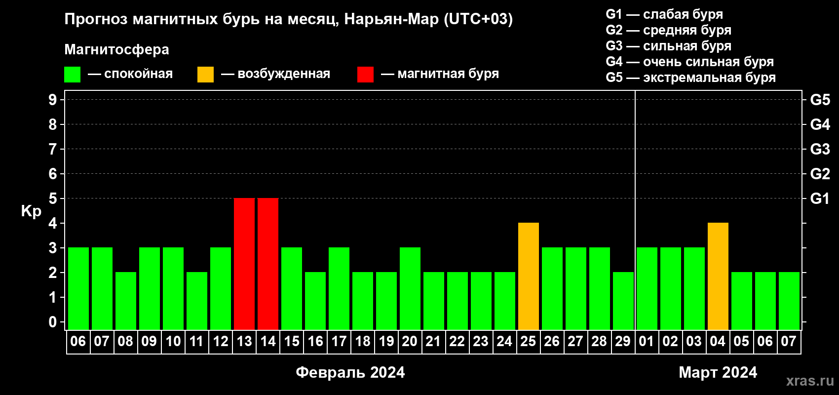 Прогноз магнитных бурь в Нарьян-Маре на 6 февраля 2024 года