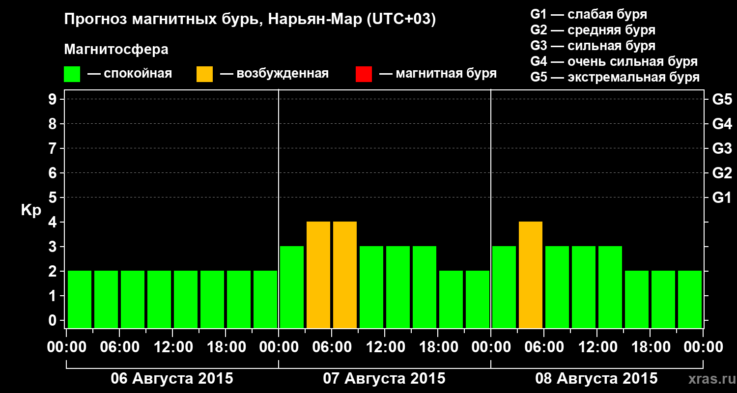Прогноз магнитных бурь в Нарьян-Маре на 6 августа 2015 года