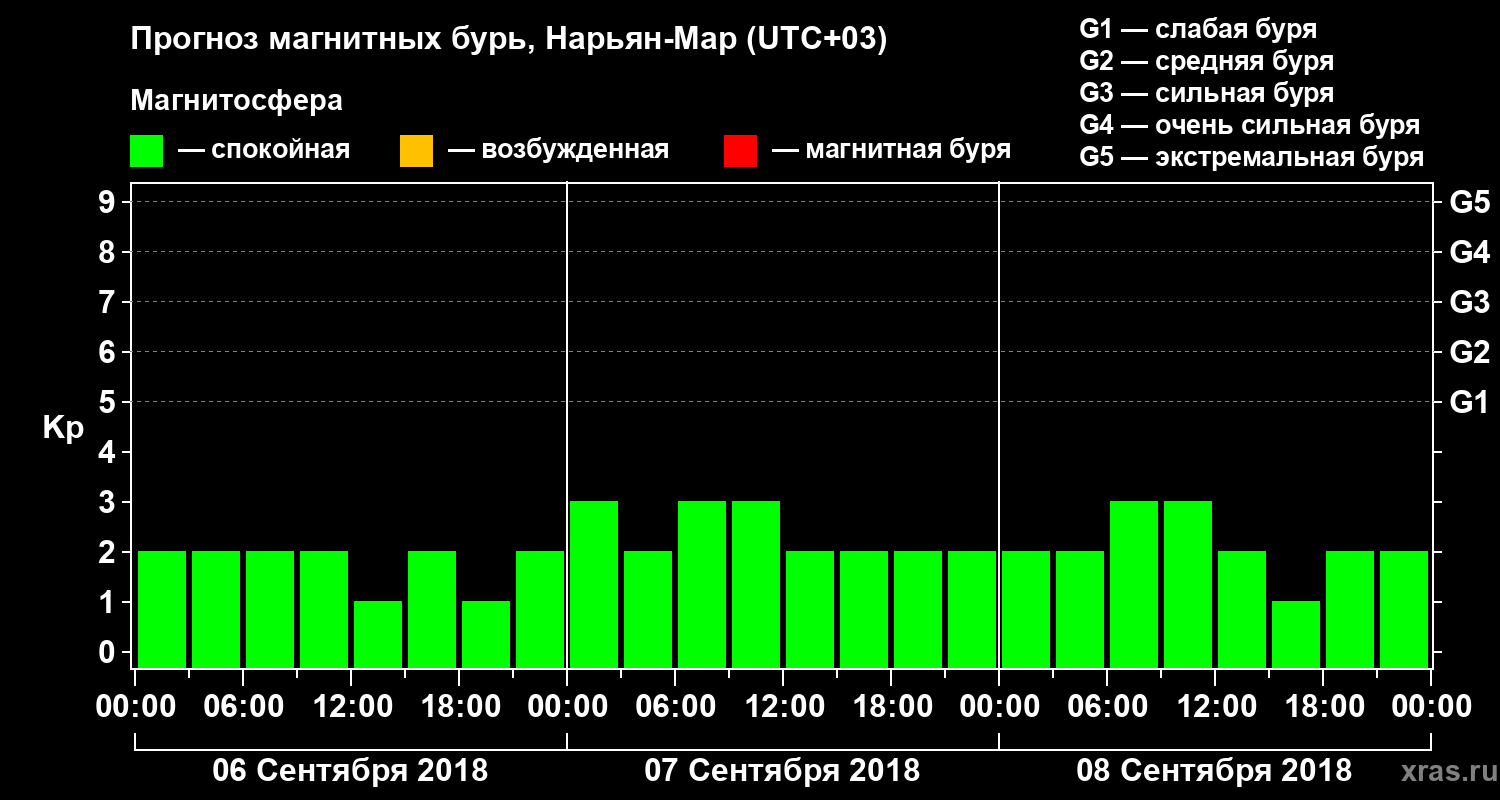 Прогноз магнитных бурь в Нарьян-Маре на 6 сентября 2018 года